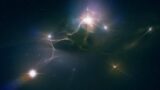 明るく輝く恒星とカラフルな星雲の宇宙空間