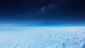 宇宙空間から見た夜明けの地球と輝く太陽
